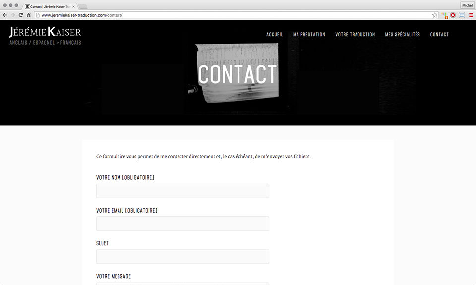 Jérémie Kaiser Traduction, de l’anglais et de l’espagnol vers le français. Identité visuelle en ligne et site web multi-écrans. Photographies de Naohiro Ninomiya. Thème WordPress sur mesure / Léger parallaxe avec Skrollr / Typos Web, voir les mentions légales du site.