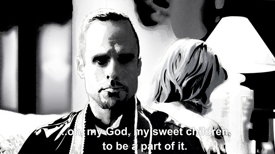 Ici, le « père profiteur » (Father Schnorer) qui à grand renfort d’écoute attentionnée sur fond de croyance religieuse « profite » allègrement en réalité des délicieux plats toujours prêts à micro-onder de Carmela, de sa solitude, de son hospitalité, de sa générosité, de ses bonnes bouteilles de vins, de sa télévision géante et de ses bons DVDs. Il lui prodigue quelques bonnes phrases et enseignements religieux afin de la relancer, de la bonne morale bien sûr en fermant totalement les yeux sur la provenance de tout cet argent, c’est-à-dire l’argent du crime.